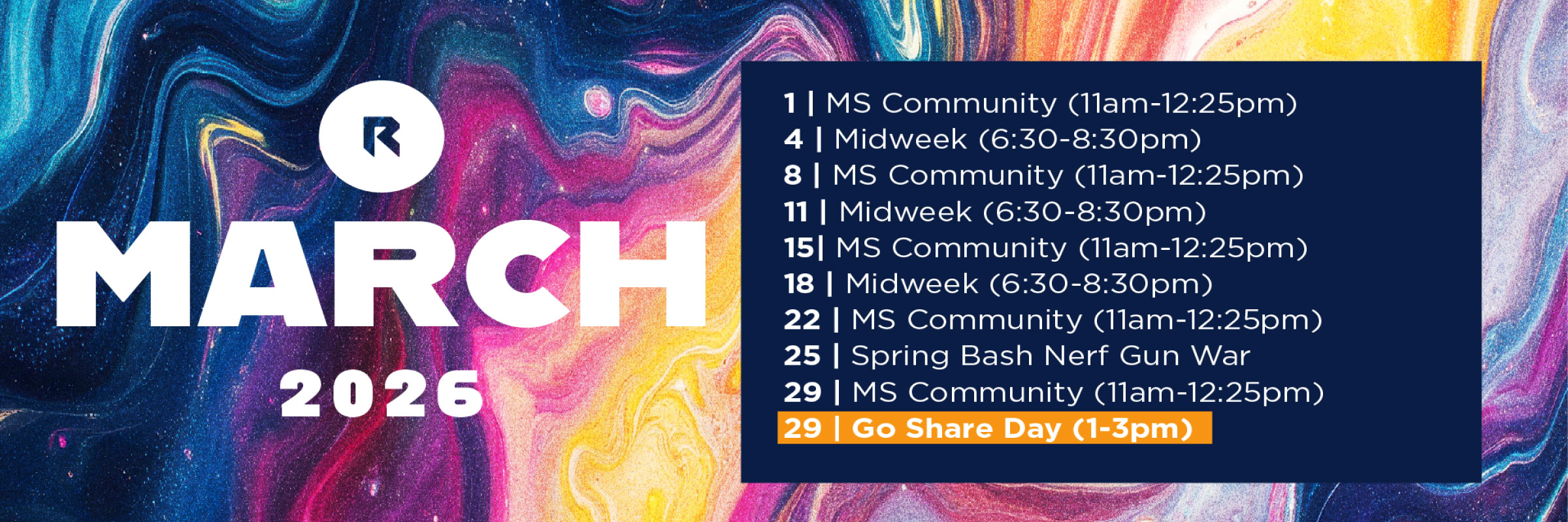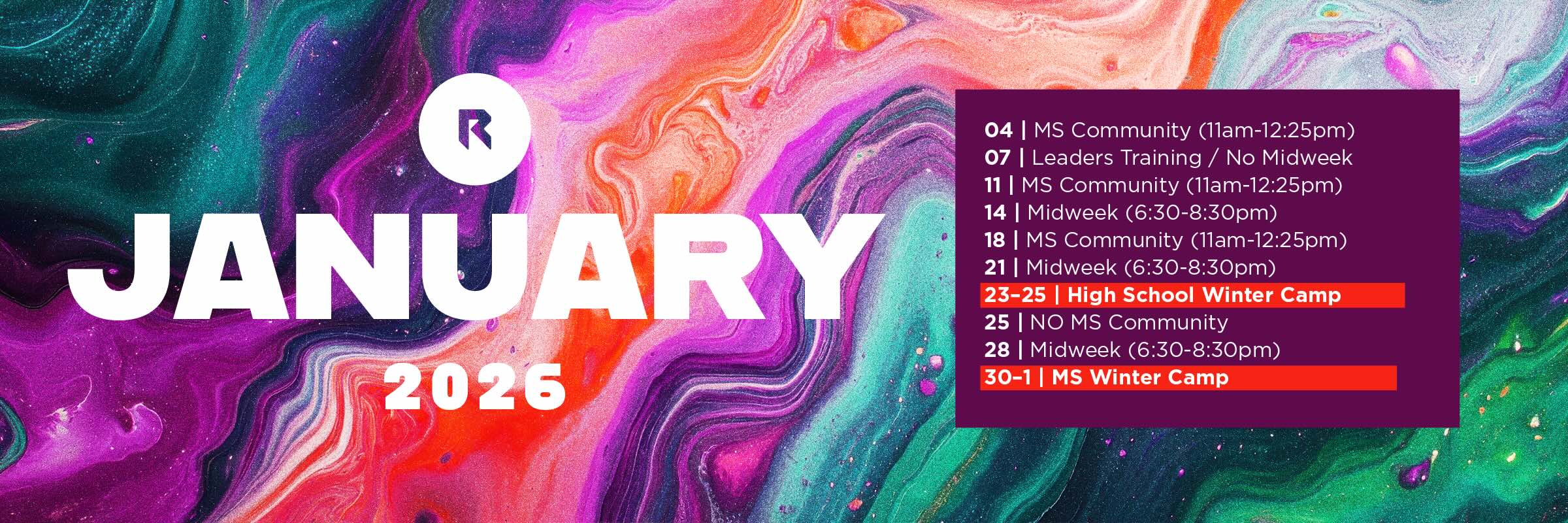 We invite our middle school students (6th-8th grade) to join us for Sunday Community at 11 am in the Rock. The Rock Middle School Community is a topical Bible study designed to engage relevant issues with the Word of God through teaching and discussion. You can access our Calendar above to see which dates we meet.